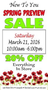 For 40 years, our family-owned small business has been the place to shop and consign in Annapolis. We carry women’s clothing (size 0-14), designer handbags and jewelry, home décor, collectibles, and furniture.